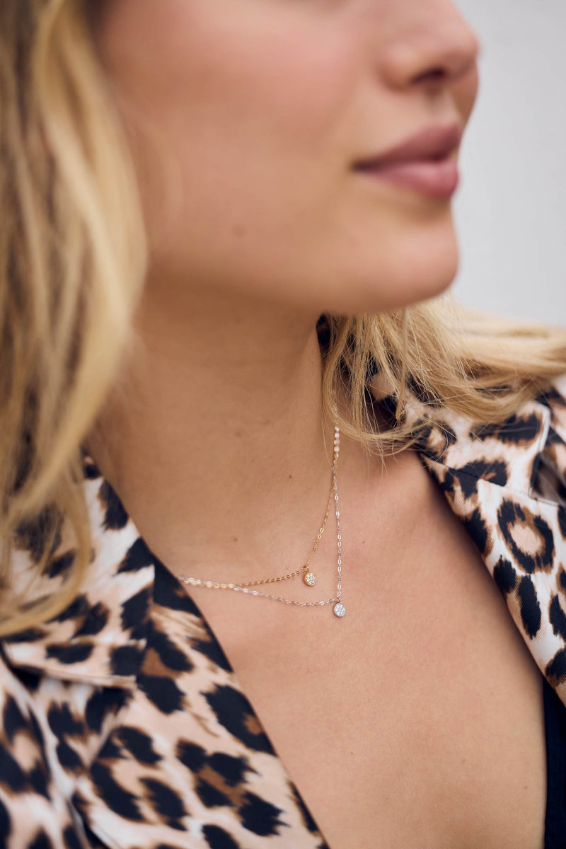 The Pure Dot collection reveals minimalistic elegance. A thin, gold chain, highlighted by a central diamond, available in three golds that play on subtle nuances. Wear it alone to enhance every moment, or layer it for a naturally luminous look.