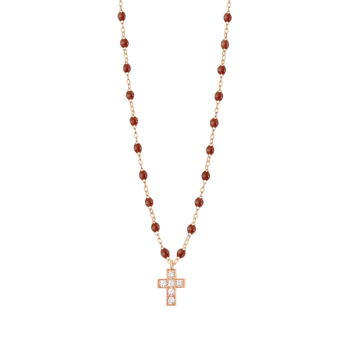 • Gigi Clozeau - Cross Charm Classic Gigi Moka diamond Necklace, Rose Gold, 16.5"