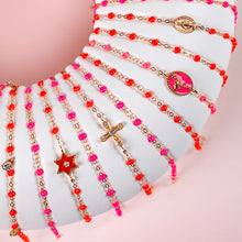 The Classic Gigi Pink Flamingo bracelet by gigi CLOZEAU features signature 18 carat Yellow Gold and Pink resin pearls with a playful feel.