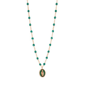 Madone resin charm Classic Gigi Emerald necklace, Rose Gold, 16.5"