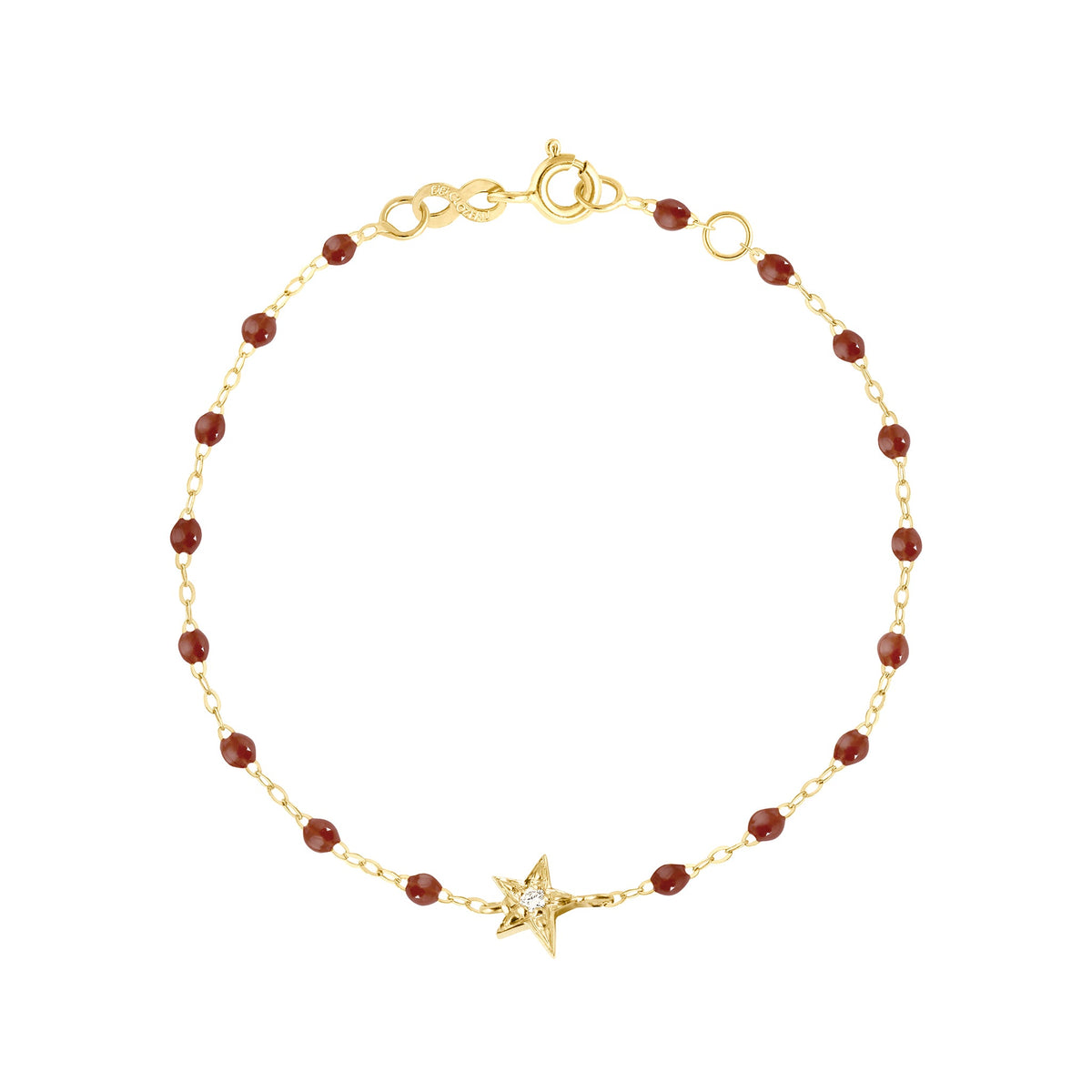 The Classic Gigi Star bracelet with diamond by gigi CLOZEAU is a playful yet elegant reminder of our joyous journey through life. This piece features 18 carat gold, a sparkling diamond and elegant resin pearls.